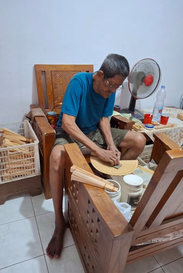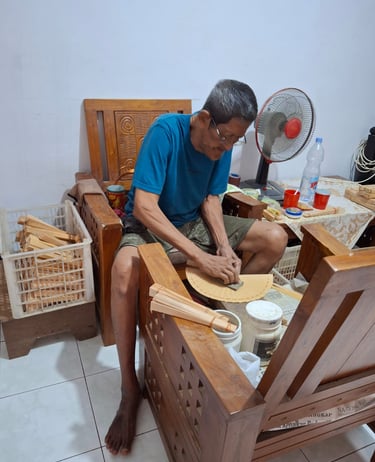Berawal dari pahatan patung di masa kecil, kini Pak Juli—atau yang akrab disapa Mbah—melanjutkan warisan leluhur melalui bilah-bilah kipas kayu yang memesona. Di sela jemari tuanya yang tak kenal lelah, setiap serat kayu diolah perlahan, penuh kehati-hatian, dan cinta. Ini bukan sekadar alat penyejuk, melainkan sebuah mahakarya yang lahir dari dedikasi seumur hidup.